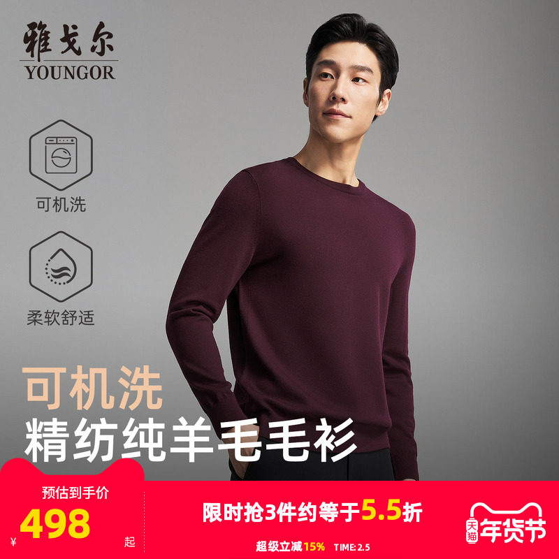 【可机洗全羊毛】雅戈尔秋冬季男士圆领套头商务休闲纯色打底毛衫