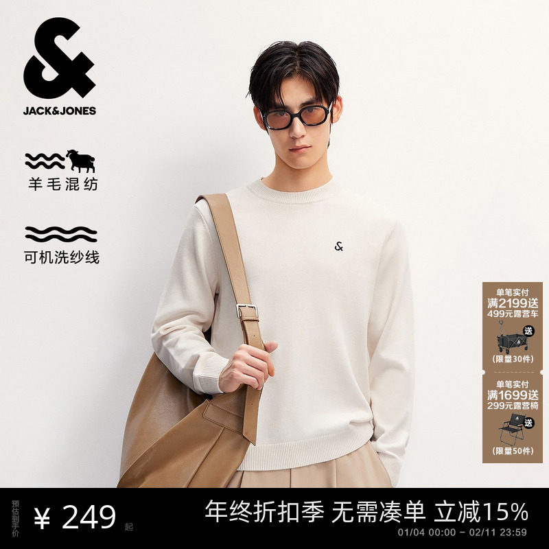 【可机洗】杰克琼斯男装25年秋季新款32%羊毛毛衣刺绣LOGO针织衫