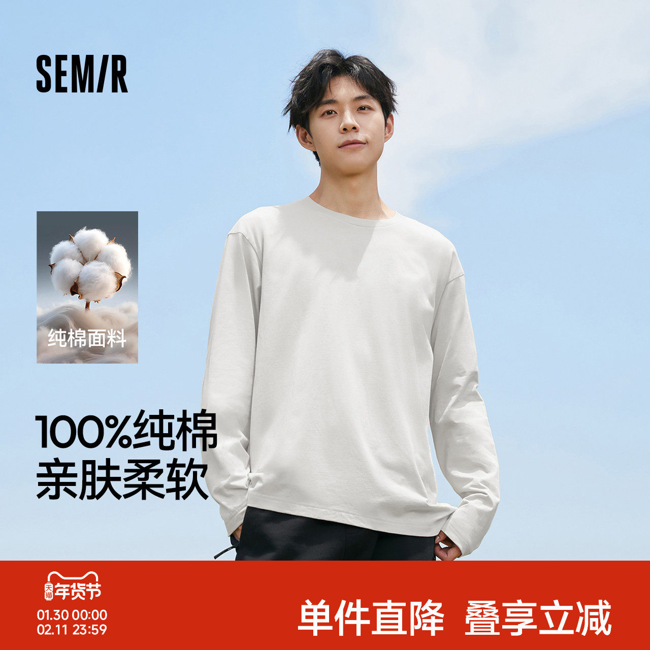 森马长袖T恤男纯棉白色内搭2025春秋新款打底上衣基础百搭情侣款