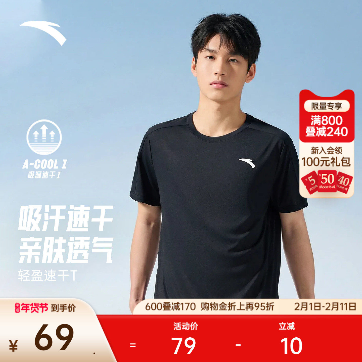 安踏速干T丨吸湿透气短袖t恤男款夏季新款跑步健身针织衫运动上衣