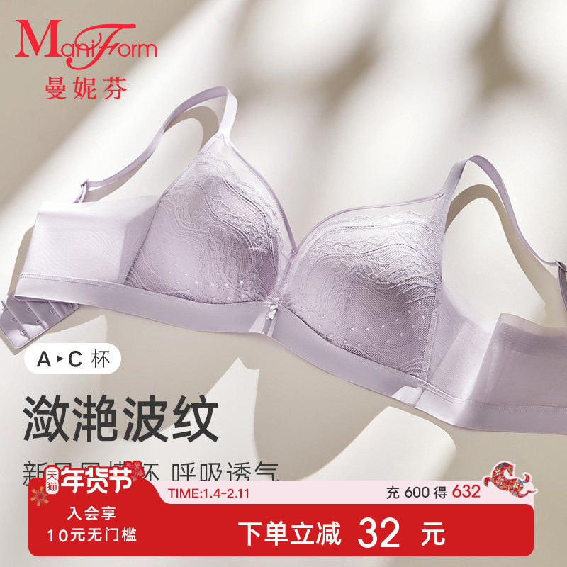 曼妮芬女士舒适长三角无钢圈文胸性感蕾丝透气内衣胸罩20812433